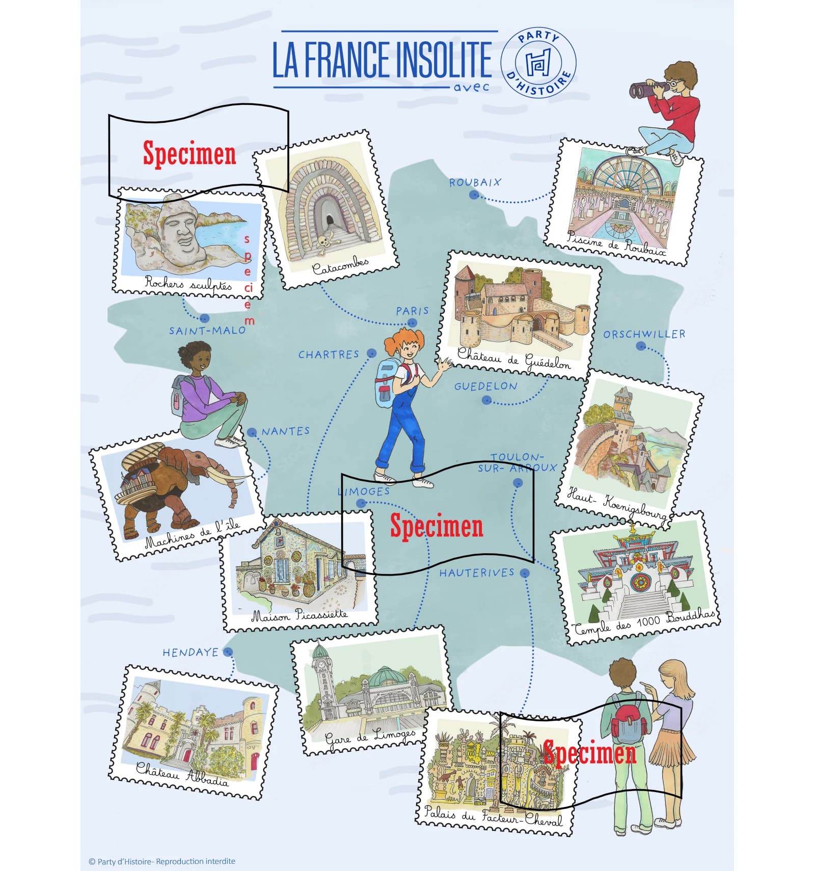 " Enfant, je tiens un petit journal dans lequel je mêle reportages et petites brèves illustrées que mon entourage dévore chaque mois. Ce désir de partage se retrouve aujourd’hui dans cette grande aventure de Party d’Histoire ! J’ai plaisir à raconter l’Histoire aux enfants en créant ces belles enquêtes ludiques ancrées dans notre patrimoine, où nos grands Hommes prennent vie en couleurs. "